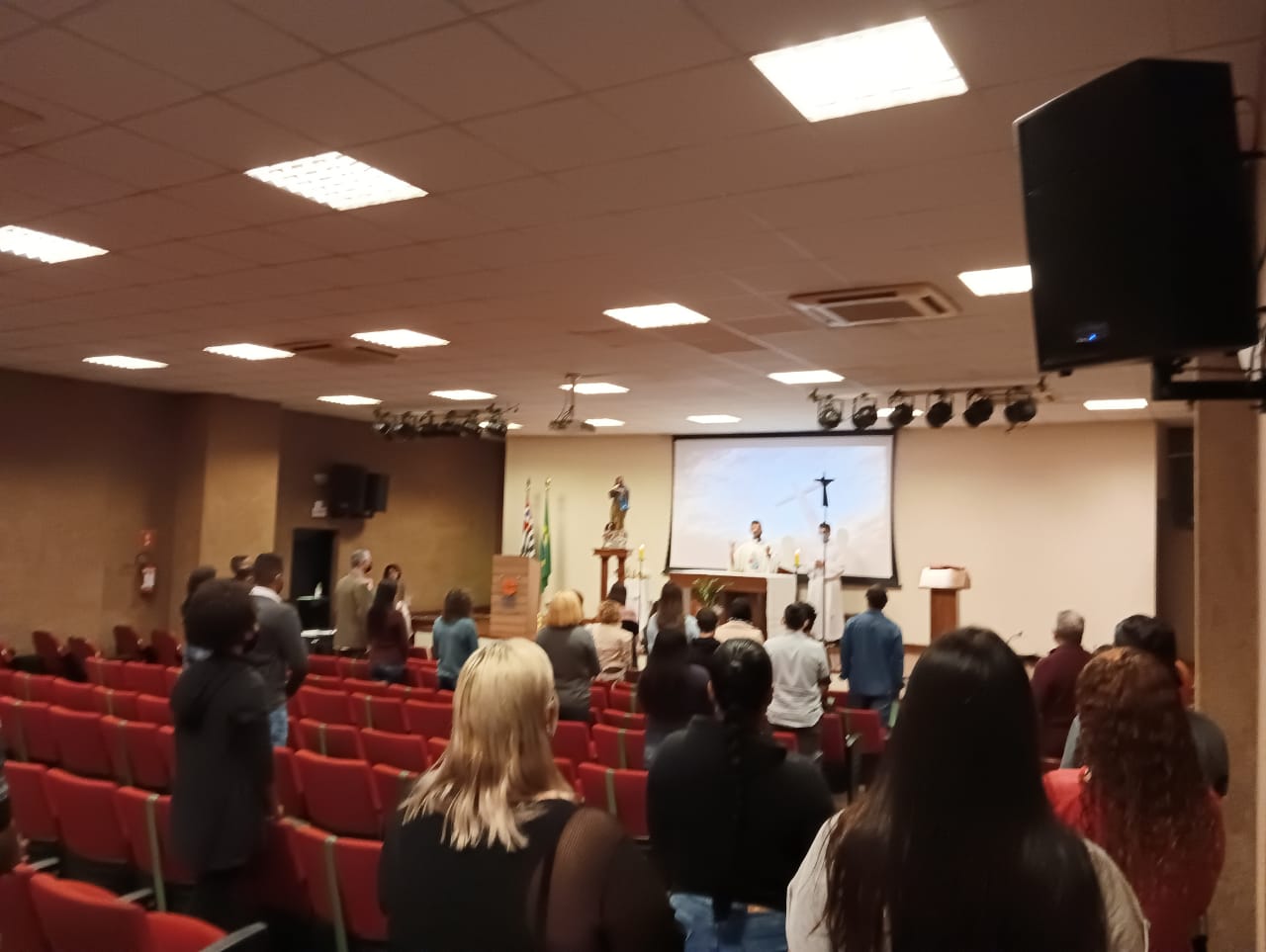 Em dezembro, celebramos com alegria a Primeira Comunhão de duas alunas do Serviço Social, Sônia e Ana Laura, que após um tempo de preparação pelo sistema Sacramentos On-line, receberam pela primeira vez a Eucaristia. Foi emocionante ouvir seu testemunho: “esperamos anos para isso acontecer, e nunca imaginamos que seria na faculdade.” Ainda em dezembro, foi celebrada uma missa, presidida por nosso reitor, o Pe. Edelcio, a pedido das